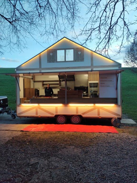 Unser kleiner Anhänger passt überall hin, wenn die Zufahrt schwierig ist oder auf dem Festgelände wenig Platz zur Verfügung steht. So können wir auch an abgelegenen oder engen Orten für Raclette‑Genuss sorgen.